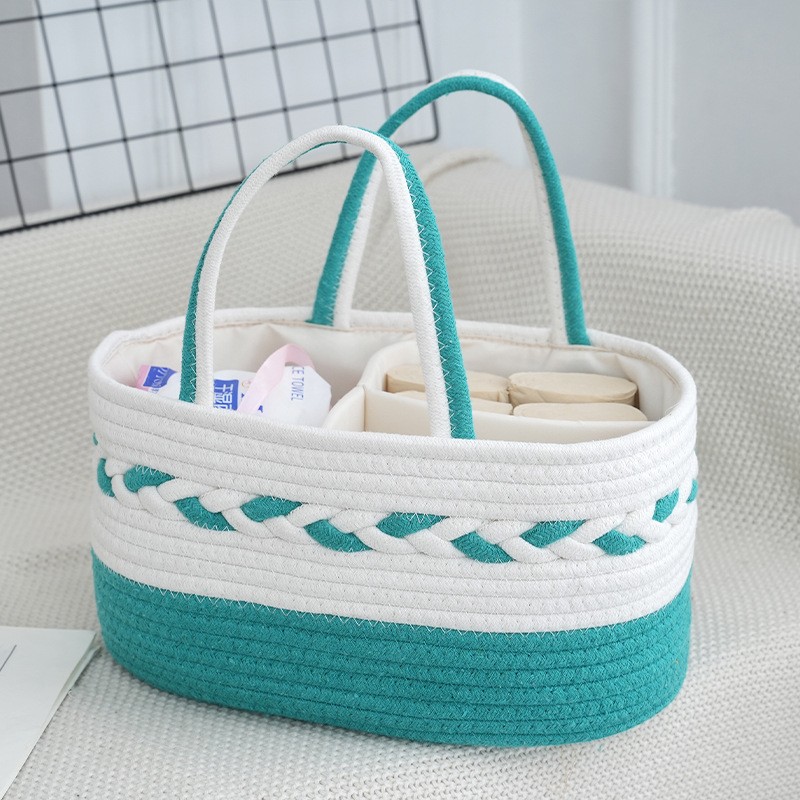 New arrival woven diaper caddy Cotton cord woven baby storage Removable lining organizer basket Diaper caddy for baby storage Baby storage basket woven