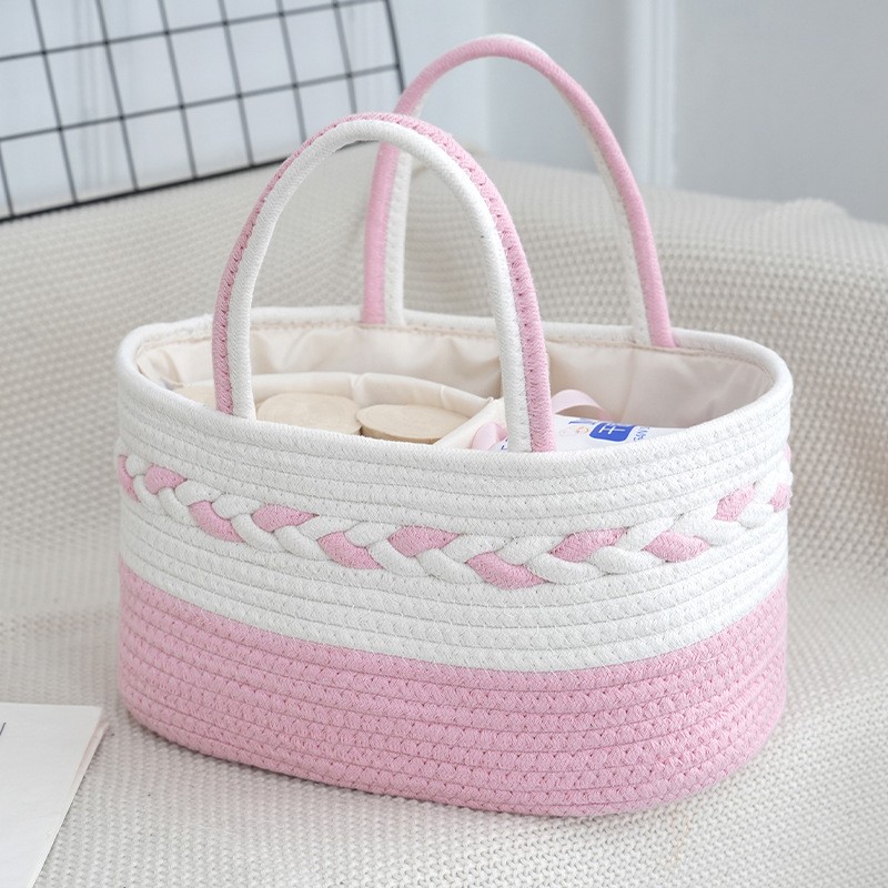 New arrival woven diaper caddy Cotton cord woven baby storage Removable lining organizer basket Diaper caddy for baby storage Baby storage basket woven